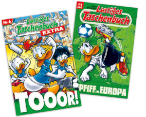 Schon bald ertönt der Anpfiff zur Fußball-Europameisterschaft. Damit die Vorfreude bei den Fans schließlich in einer La Ola-Welle mündet, wird nun die passende Lektüre mit Geschichten aus Entenhausen im Handel erscheinen. In gleich zwei Ausgaben des Walt Disney Lustiges Taschenbuch (LTB) wird auf den Saisonhöhepunkt eingestimmt.